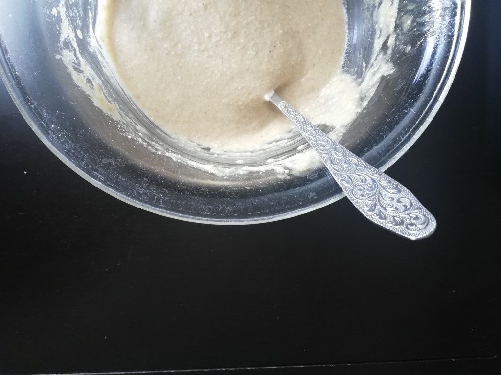 ⦁ Galiausiai, įpilkite avižinių miltų (galima sutrinti avižinę košę blenderyje) po 1 valg. šaukštą, kol pasidarys tiršta, bet skani tešla (tirštesnė nei jūsų vidutinė bandelių tešla, bet ne tokia tiršta, kad atrodytų sausa).